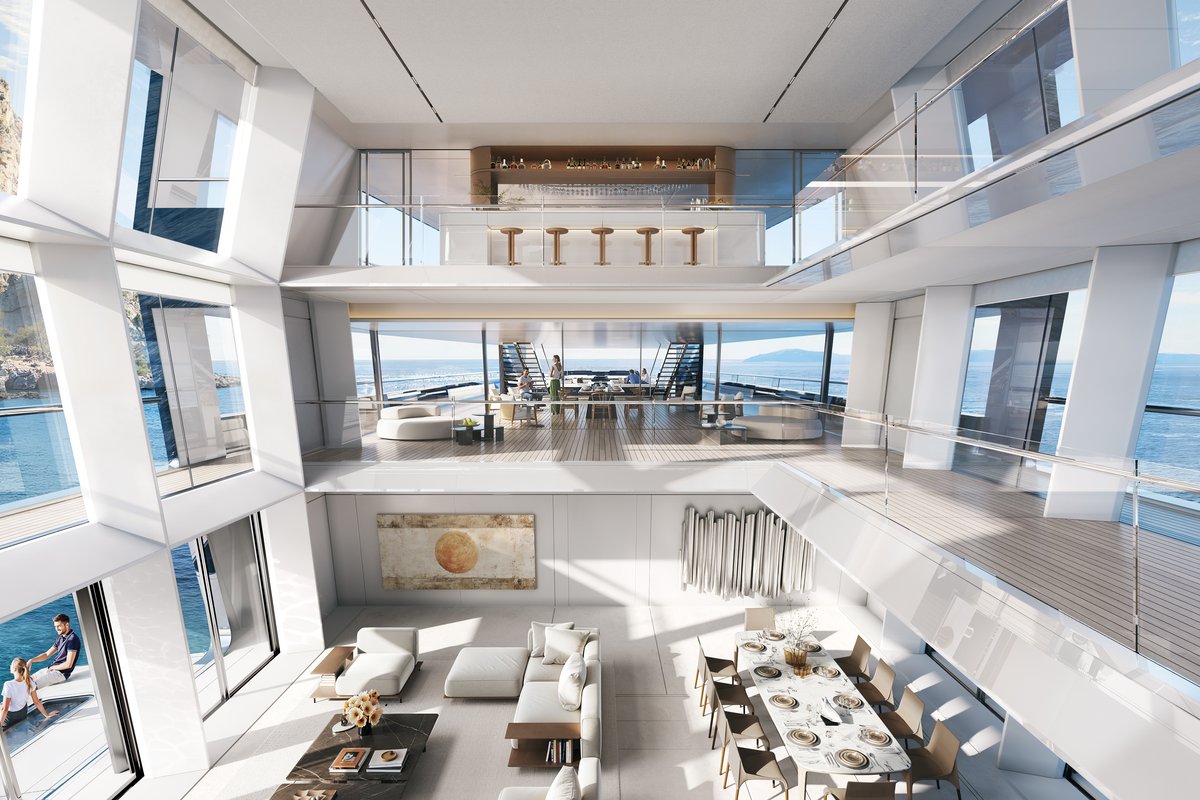 The new innovative concept enables better spatial connectivity, both vertically and horizontally, enhancing interactions between guests and crew and while reimagining their accommodation for greater comfort and privacy. It unlocks the potential for spacious, expansive interior spaces as well as unobstructed exterior decks, ideal for lounging or entertaining.